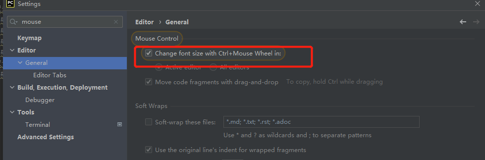 5通过CTRL+滚轮控制代码的大小:file中找到default settings或者settings,搜索mouse,找到general中的change font size(zoom) with ctel+mouse wheel,勾选保存即可