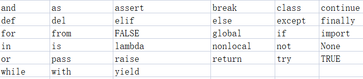 python中的全部关键字