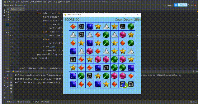 game = gemGame(screen, sounds, font, gem_imgs, cfg)