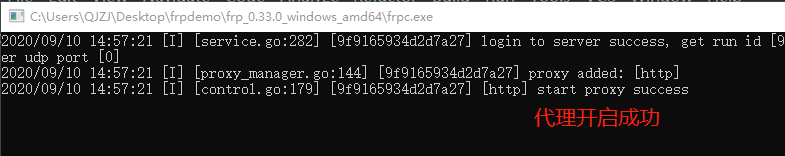执行:start frpc.exe -c frpc.ini