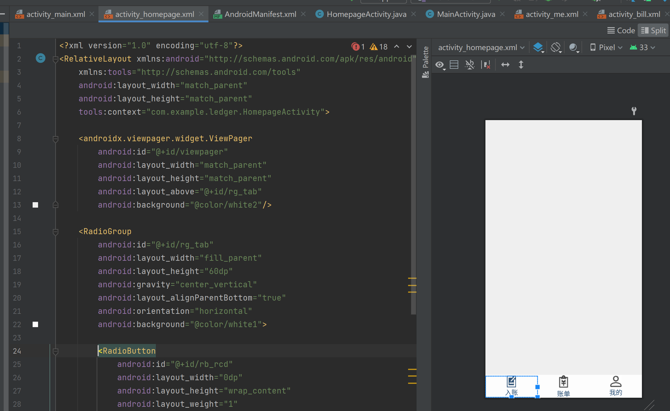 简单的实现了登陆界面,和底部导航栏的页面跳转。