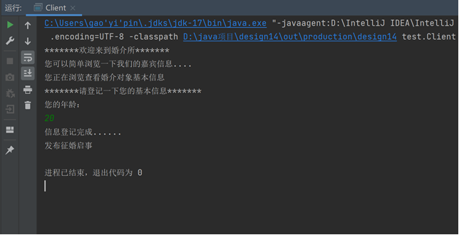 System.out.println("您发布了一条征婚启事,请注意查收结果消息");