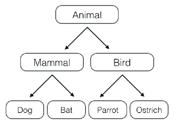 如果按照哺乳动物和鸟类归类,我们可以设计出这样的类的层次: