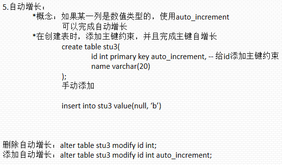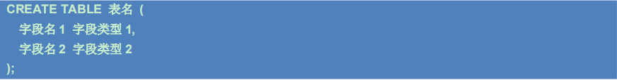 -- 创建 student 表包含 id,name,birthday 字段 create table student ( id int, -- 整数 name varchar(20), -- 字符串 birthday date -- 生日,最后没有逗号 );
