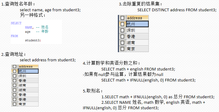 -注意: -如果查询所有字段,则可以使用*来替代字段列表