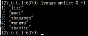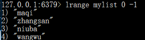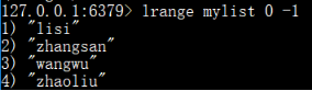 如果要查看所有元素,开始位置为0,结束位置为-1