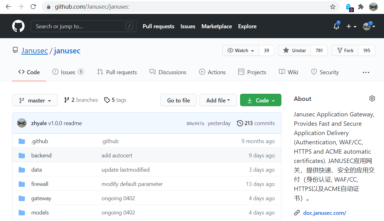 JANUSEC应用网关已发布在 https://github.com/Janusec/janusec (此外,还发布了一个Docker镜像,可用于快速体验)。