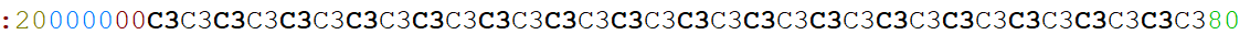 长度字节+地址字节+类型字节+数据字节=0x20+0x00+0x00+0x00+0x00+...+0xC3+0xC3=0x1880