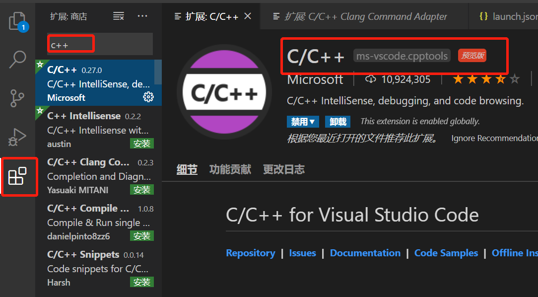 安装好之后,打开VSCode,搜索C++下载,安装即可