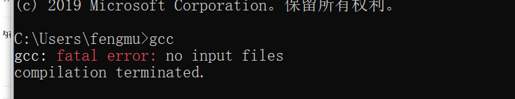 验证是否生效:输入gcc若出现以下界面,则证明安装成功。