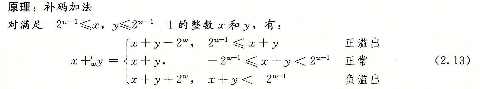 为整数和x+y被截断为w位的结果,并将这个结果看做是补码数。