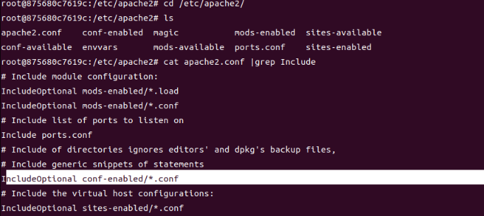 在ubuntu下,Apache的配置文件在etc/apache2/apache2.conf,查看一下这个文件,发现包含了conf-enabled下的所有.conf配置文件