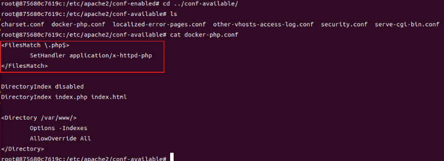 该conf-available目录下的docker-php.conf配置不当造成未知后缀解析漏洞