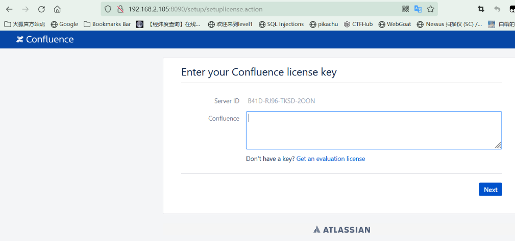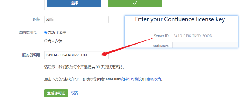 打开https://my.atlassian.com/license/evaluation注册账号,获取license key