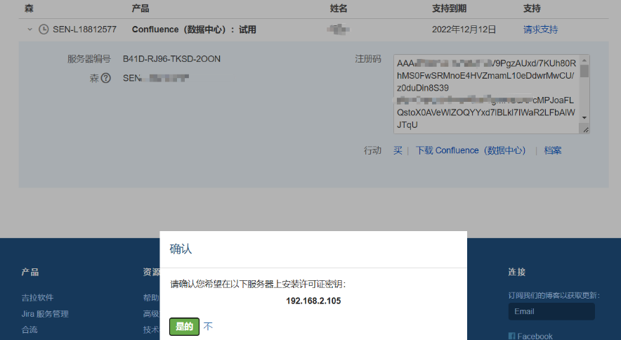 key地址https://my.atlassian.com/products/index?sen=18812577&evalId=18812577&eval=true#license_18812577