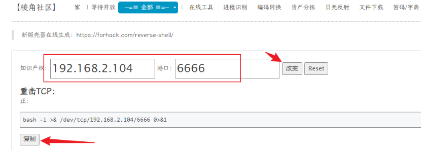 输入kali攻击机的ip地址以及对应的端口,就能够在线生成shell,我们复制第一个shell