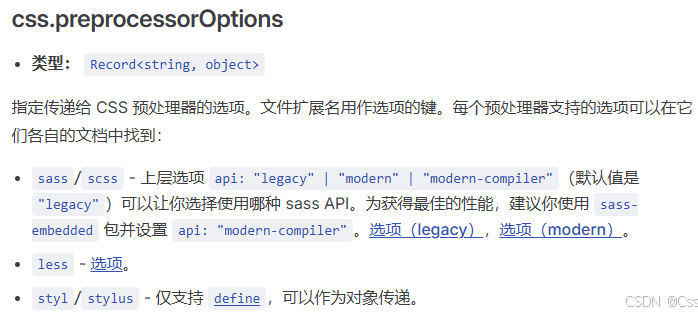 在css.preprocessorOptions部分发现sass/scss的api默认值为 "legacy"