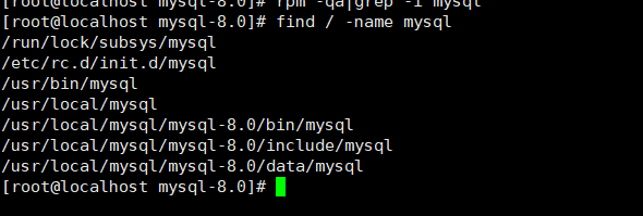 查看MySQL的安装情况,如果能查到的话那就用命令卸载 rpm -ev mysql-community-client-8.0.13-1.el7.x86_64 卸载,在卸载过程中如果有依赖卸载失败的话,使用命令 rpm -ev mysql-community-client-8.0.13-1.el7.x86_64 --nodeps 卸载,如下图没找查到:
