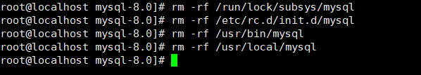 rm -rf /run/lock/subsys/mysql rm -rf /etc/rc.d/init.d/mysql rm -rf /usr/bin/mysql rm -rf /usr/local/mysql