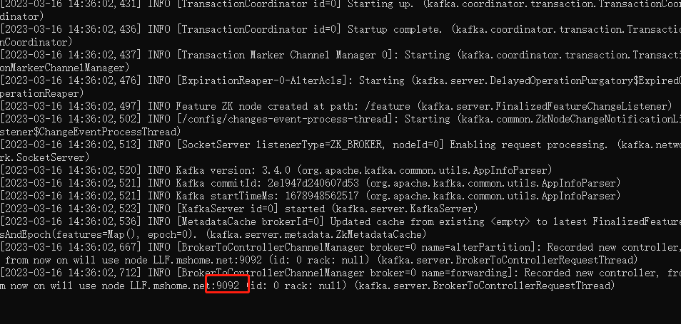 进入上面路径cmd控制台:kafka-server-start.bat ..\..\config\server.properties