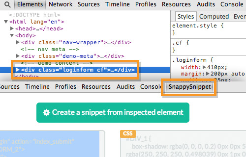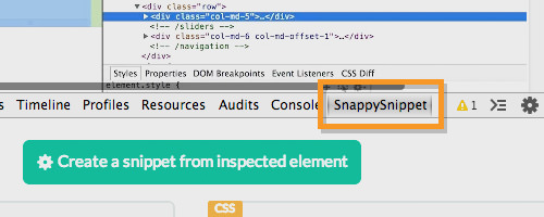 SnappySnippet是一个Chrome扩展程序( 在此处获取),安装后将在Google Chrome DevTools中为您提供一个名为SnappySnippet的新标签。 这是我们将操作SnappySnippet的地方。