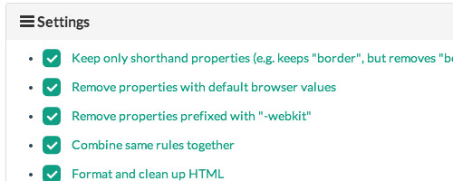 SnappySnippet允许我们设置代码输出。 在用于放置HTML和CSS的两个窗格下,您将找到“ 设置”面板。 您可以进行一些设置,例如从输出中删除带有-webkit-前缀CSS属性,为给HTML元素提供的ID插入前缀,等等。