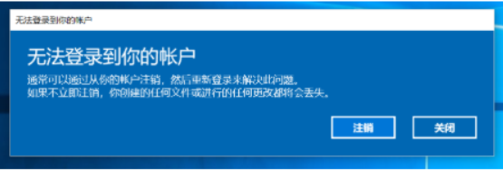 然后登陆之后,会有一个弹窗,说无法登陆当前账户,因为你修改了账户内容,但是还没有生效,点击关闭。
