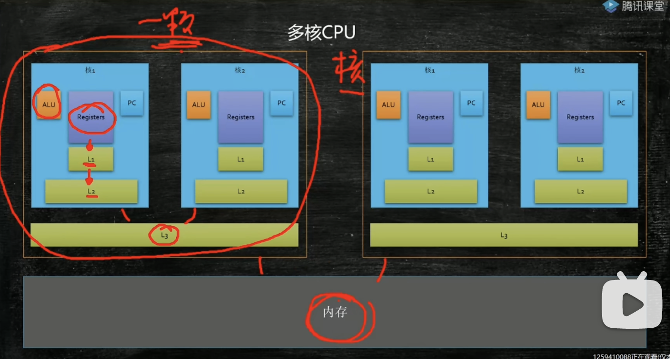 内存中有语句或者数据需要放入cpu进行计算,首先由寄存器从L1到L3寻找,若都没有,则从内存中取,取到后存储在“三核”中,下次再需取该值则直接从“核”中取,这就是缓存的用法。