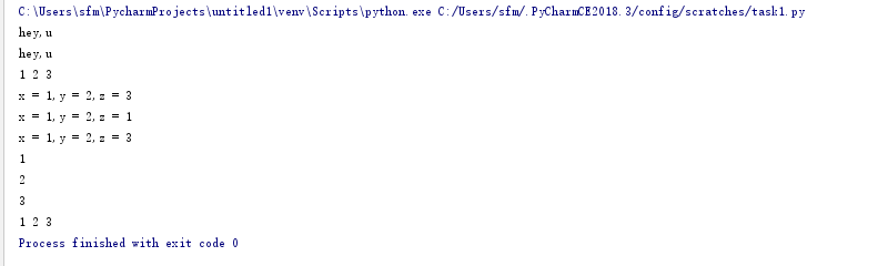 print(f'x = {x},y = {y},z = {z}') #方法3