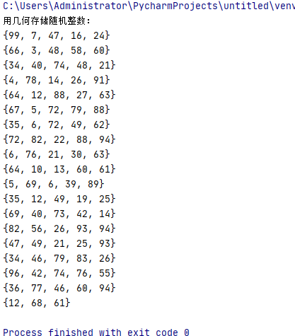 # 测试几何解析形式s = {random.randint(1,100) for i in range(5)}生成几何,len(s)一定是5吗?