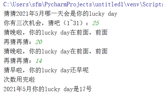 print('猜猜2021年5月哪一天会是你的lucky day')