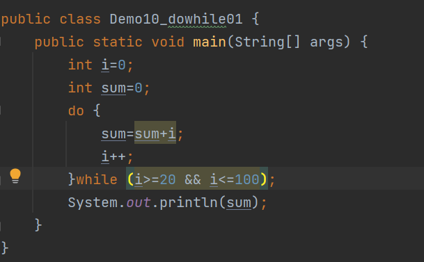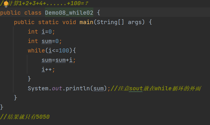 注意sout所放的位置,放在while循环语句里面所显示的结果不一样(可自己敲敲看)