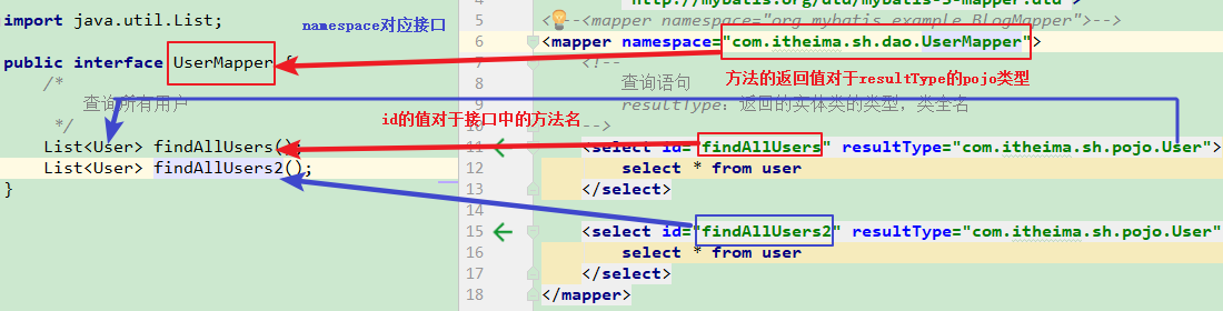加载接口:【1】映射文件和接口名称必须一致; 【2】路径一致