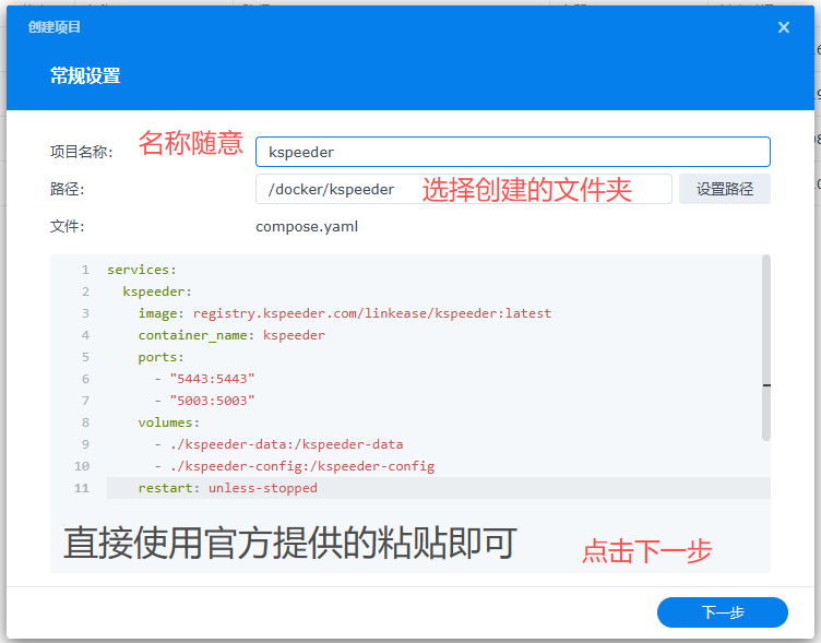 services: kspeeder: image: registry.kspeeder.com/linkease/kspeeder:latest container_name: kspeeder ports: - "5443:5443" - "5003:5003" volumes: - ./kspeeder-data:/kspeeder-data - ./kspeeder-config:/kspeeder-config restart: unless-stopped