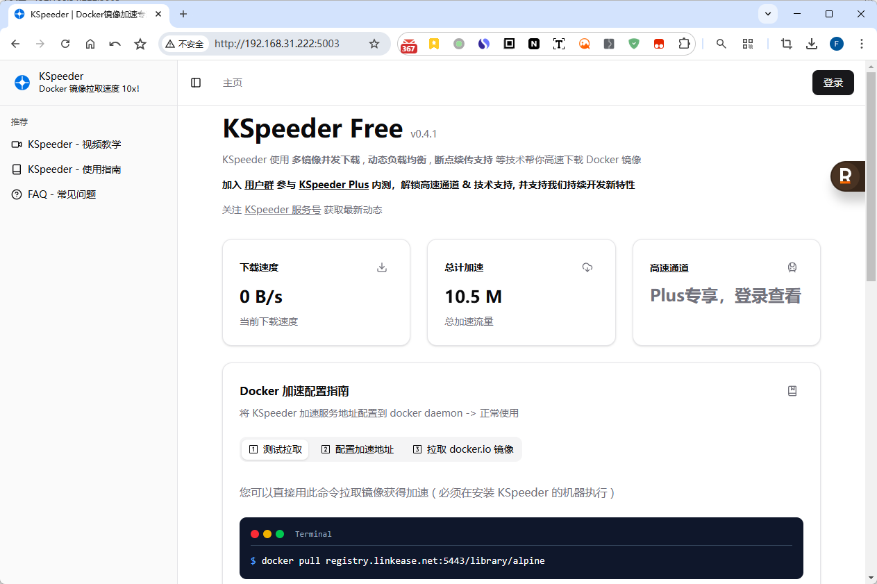 1、按官方提供下载镜像:Kspeeder 用 Docker 快速开始