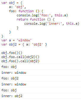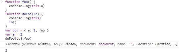 var a = 1 function outer () { var a = 2 function inner () { console.log(this.a) // 1 console.log(this) } inner() } outer()