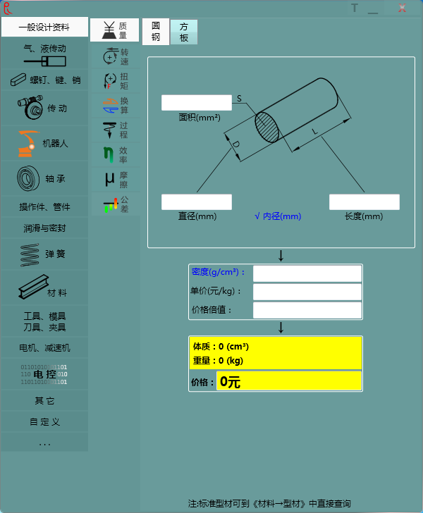 1、价格 ——(包括圆钢、方板材料费价格计算。附带体质计算、重量计算。)