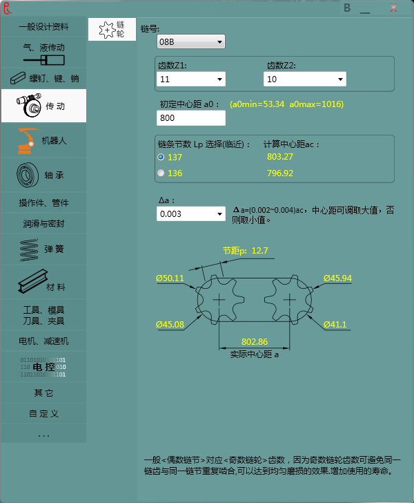 3、功能追加链轮计算、自定义。