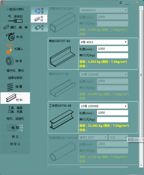 12、型材——(国际型材的规格查询及重量、价格计算。)