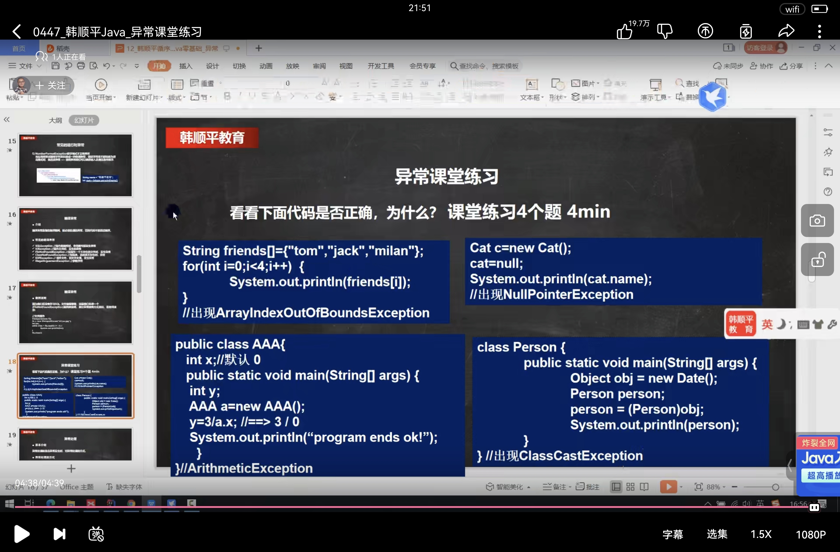 当你觉得程序中可能存在或出现异常时,用一个try catch 异常处理机制来解决