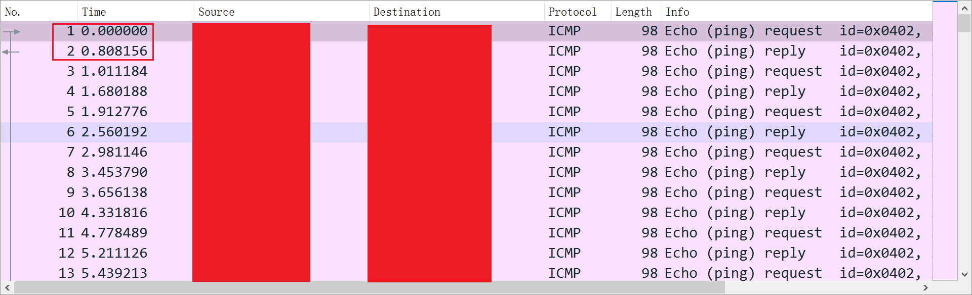 eth4:数据包来回之间,有明显的0.8s延迟(800ms)