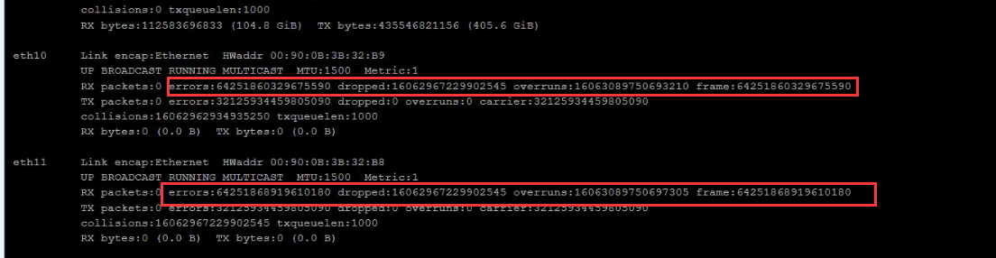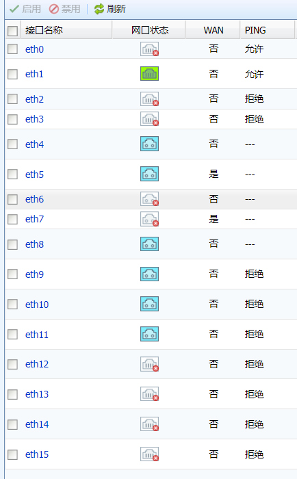 本设备只有三个数据接口是启用的 eth1,eth4,eth5。但是设备显示eth{8..12}都已经up。实际上设备没有模块。