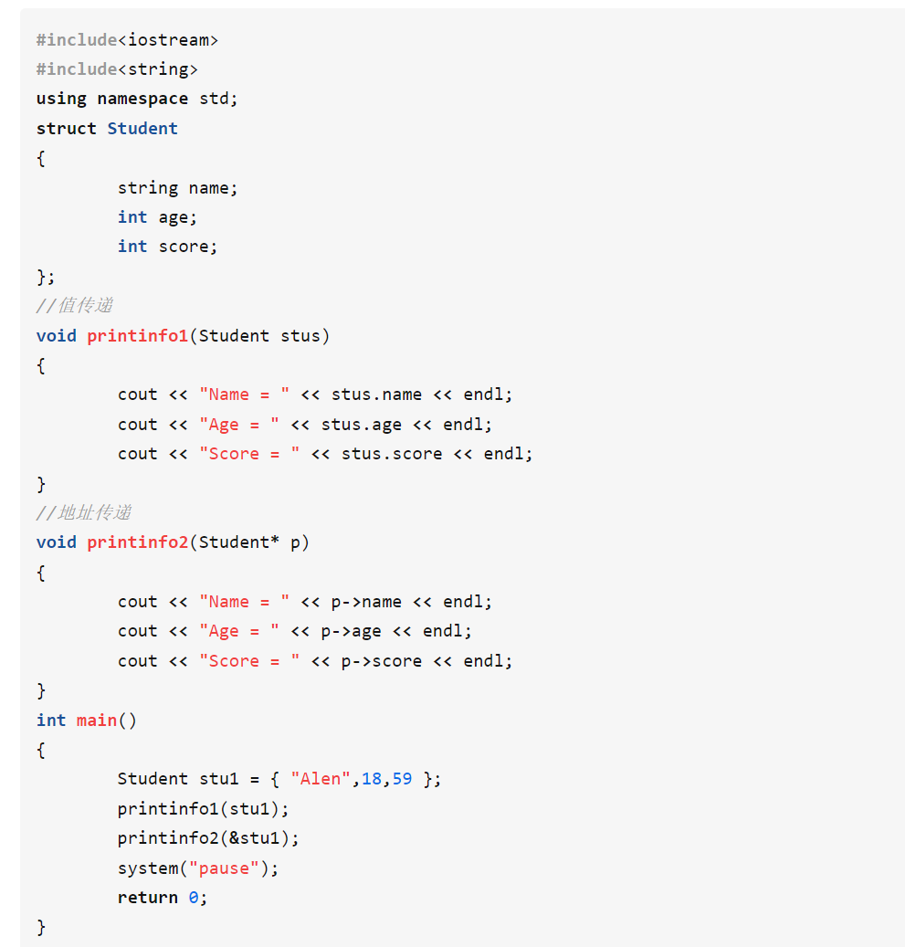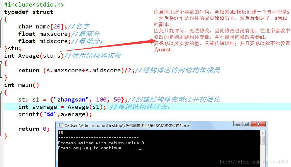 要想通过调用函数修改实参结构体变量的值,只能传递地址,通过指针来修改;直在地址上修改;