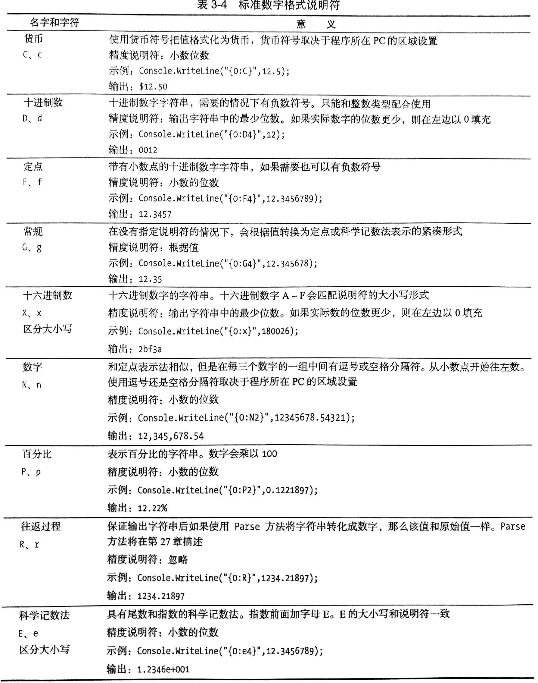 以下是标准数字格式说明符