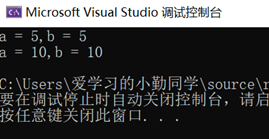 using System; class Program { static void Main() { int a=5; ref int b = ref a; Console.WriteLine($"a = {a},b = {b}"); b = 10; Console.WriteLine($"a = {a},b = {b}"); } }