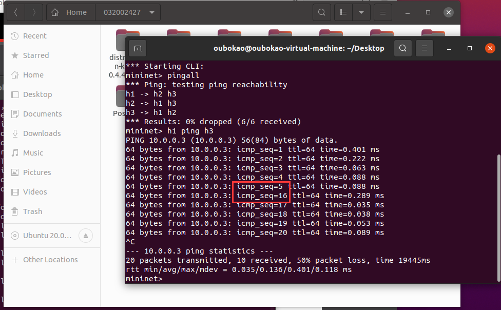Mininet中ping测试截图