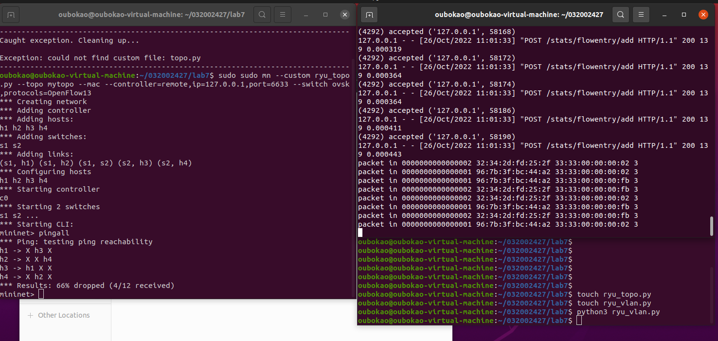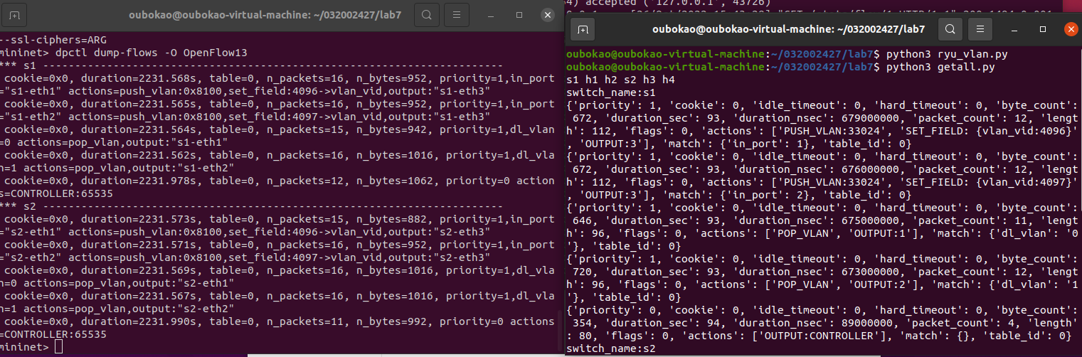 - 参考Ryu REST API的文档,基于VLAN实验的网络拓扑,编程实现相同的VLAN配置