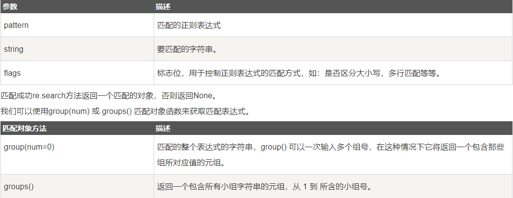 re.search 扫描整个字符串并返回第一个成功的匹配。