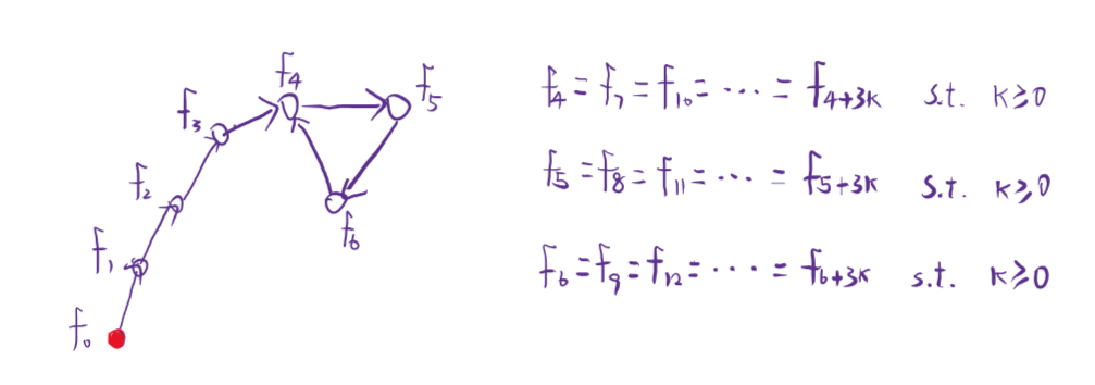 我们写一个 while 的死循环,从 \(N\) 开始(假设已经经过了第一次变异,下面的 \(N\) 都是经过第一次变异后的),记录 \(f*N\) 能到哪里,然后记录 \(f \circ f * N\) 能到哪里,……,最终当我们第二次访问到一个数的时候,就可以推出循环了。这个循环的时间复杂度是 \(O(M \varepsilon)\) 的。这里 \(2 \times 10^{6}\) 和 \(M\) 同阶,\(\varepsilon\) 是字符集大小,实际上是 \(\log_{10} 10^{6} = 6\) 。