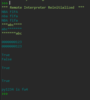 1 #1 2 #字符串的基础操作 3 x='nba FIFA' 4 print(x.upper()) #字符串转大写 5 print(x.lower()) #字符串转小写 6 print(x.swapcase()) #字符串大小写翻转 7 8 x='abc' 9 print(x.center(10,'*')) #字符串居中,宽度10列,不足左右补*号 10 print(x.ljust(10,'*')) #字符串居左,宽度10列,不足右边补*号 11 print(x.rjust(10,'*')) #字符串居右,宽度10列,不足左边补*号 12 print() 13 14 x='123' 15 print(x.zfill(10)) #字符串宽度10列,不足左边用0填充 16 x=123 17 print(str(x).zfill(10)) #把int类型转换成字符串类型,对字符串对象使用str..zfill() 18 print() 19 20 x='phone_number' 21 print(x.isidentifier()) #判断字符串是否是python合法标识符 22 x='222test' 23 print(x.isidentifier()) 24 print() 25 26 x=' ' 27 print(x.isspace()) #判断字符串是否是空白符(包括空格,回车,tab键) 28 print('\n') 29 print(x.isspace()) 30 print() 31 32 x='python is fun' 33 table=x.maketrans('thon','1234') #为字符串对象x创建一个字符映射表,字符thon分别映射到数字1234 34 print(x.translate(table)) #根据字符映射表table对字符串对象x中的字符进行转换